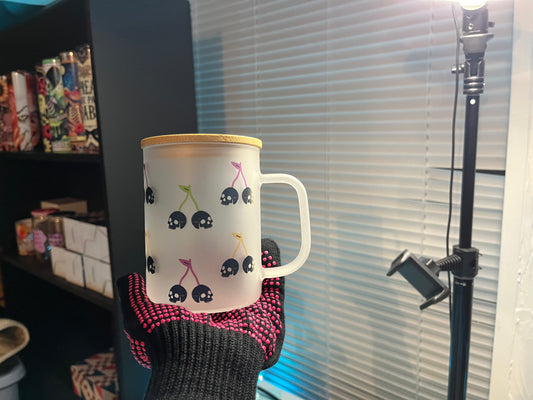 Halloween Cherry Skull Glass Mug