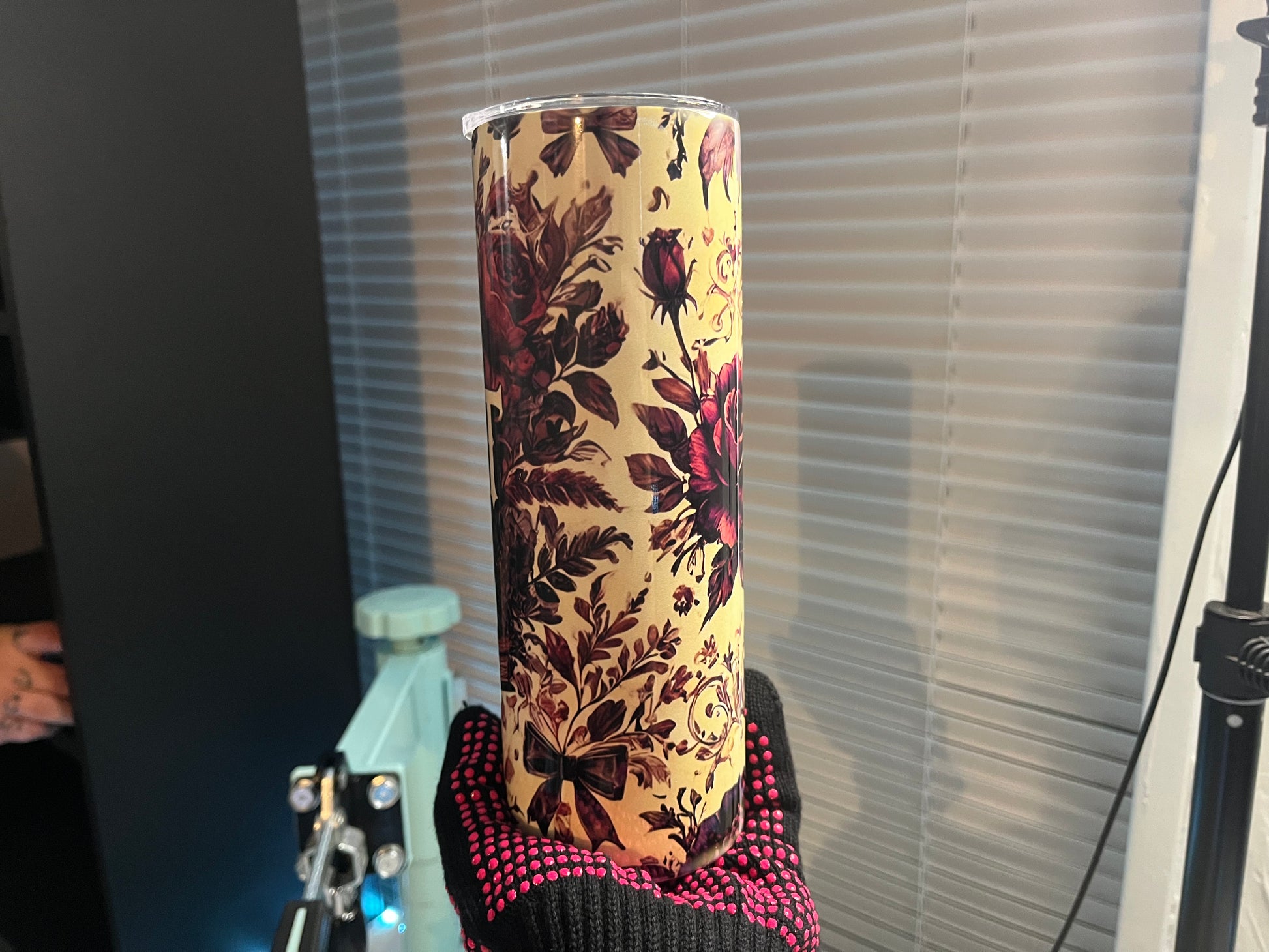 20oz sublimated tumbler. Comes with lid & metal straw.